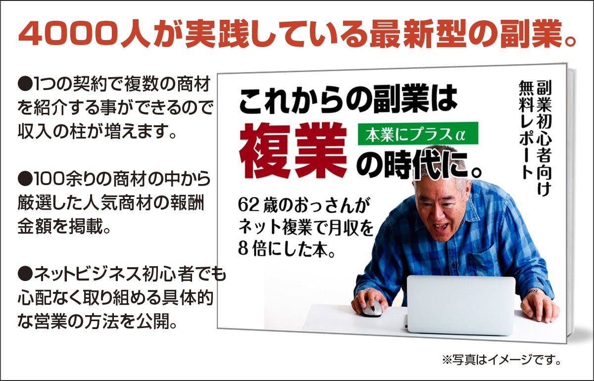 長年1つの会社に務めているが将来が不安だという方や新型コロナの影響で収入が激減した方などに、私が実践している「最新型の複業」を知っていただき、あなたの収入の柱を少しでも多く増やしてほしいという願いからその方法をレポートにまとめました。