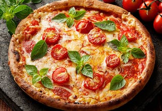 (モッツァレラチーズと沖縄産バジルのシンプルで飽きないピザ)