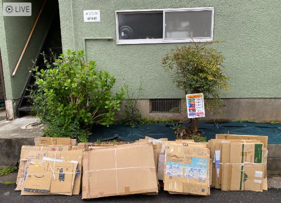 で、段ボールを入れていた