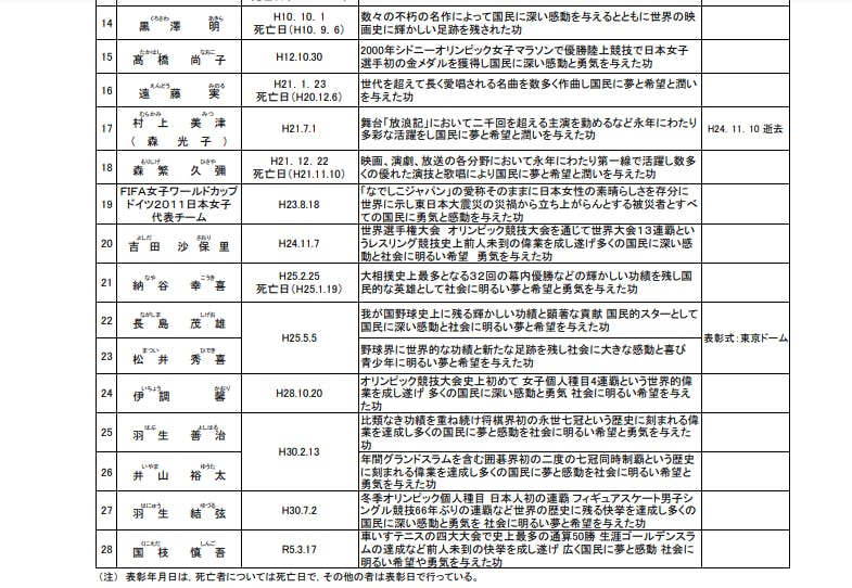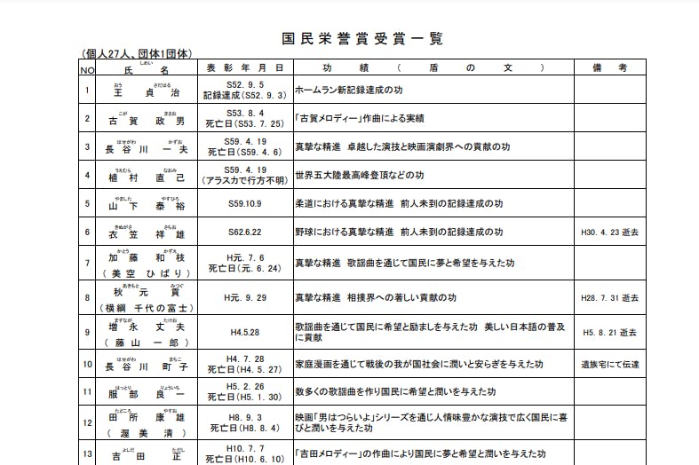 「国民栄誉賞の日」です。・゜★,。・:*:・゜☆:*:・゜★,。・:*:・゜☆★。*:・゜
