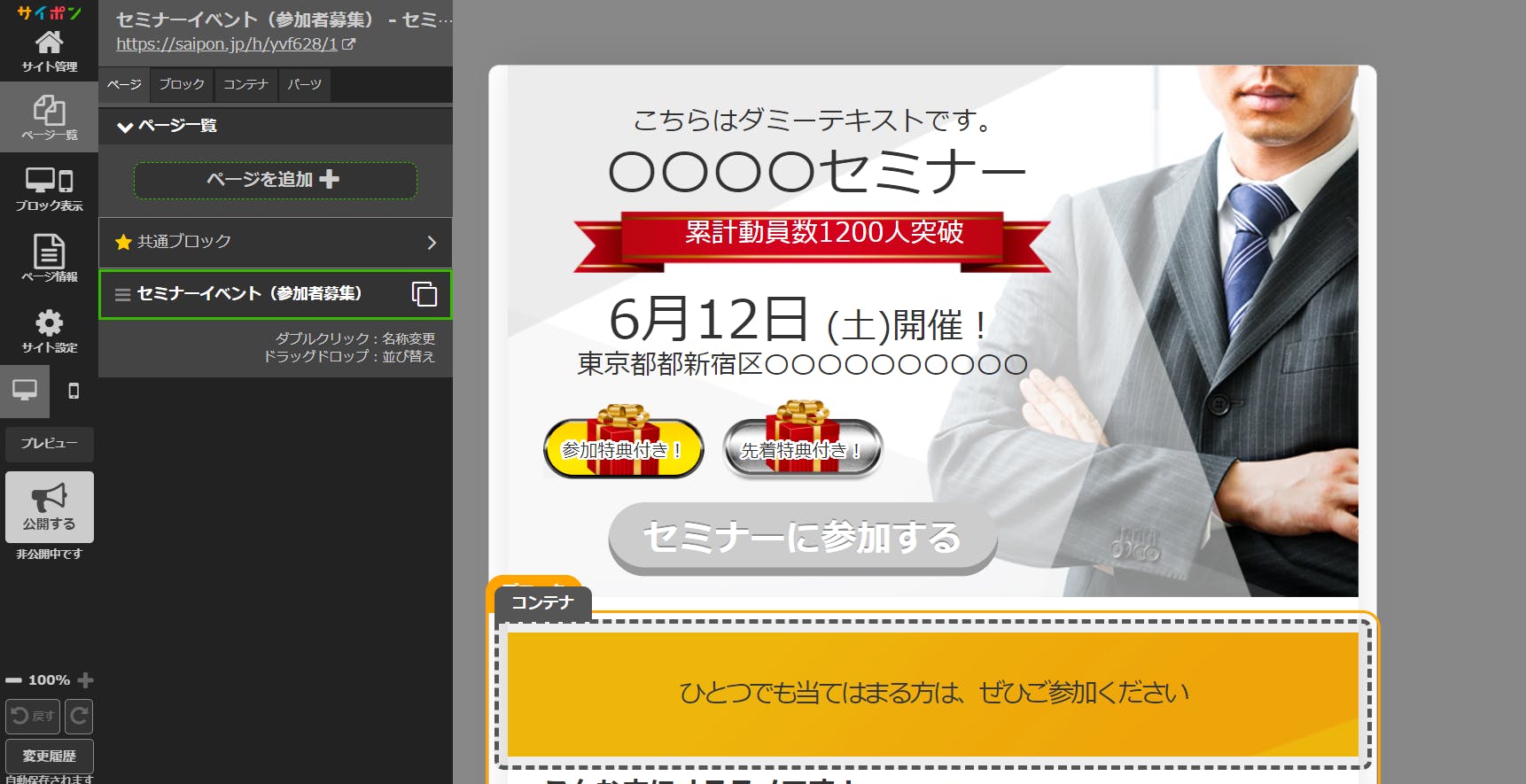 注意)ダミーですので、実際のセミナーはありません。