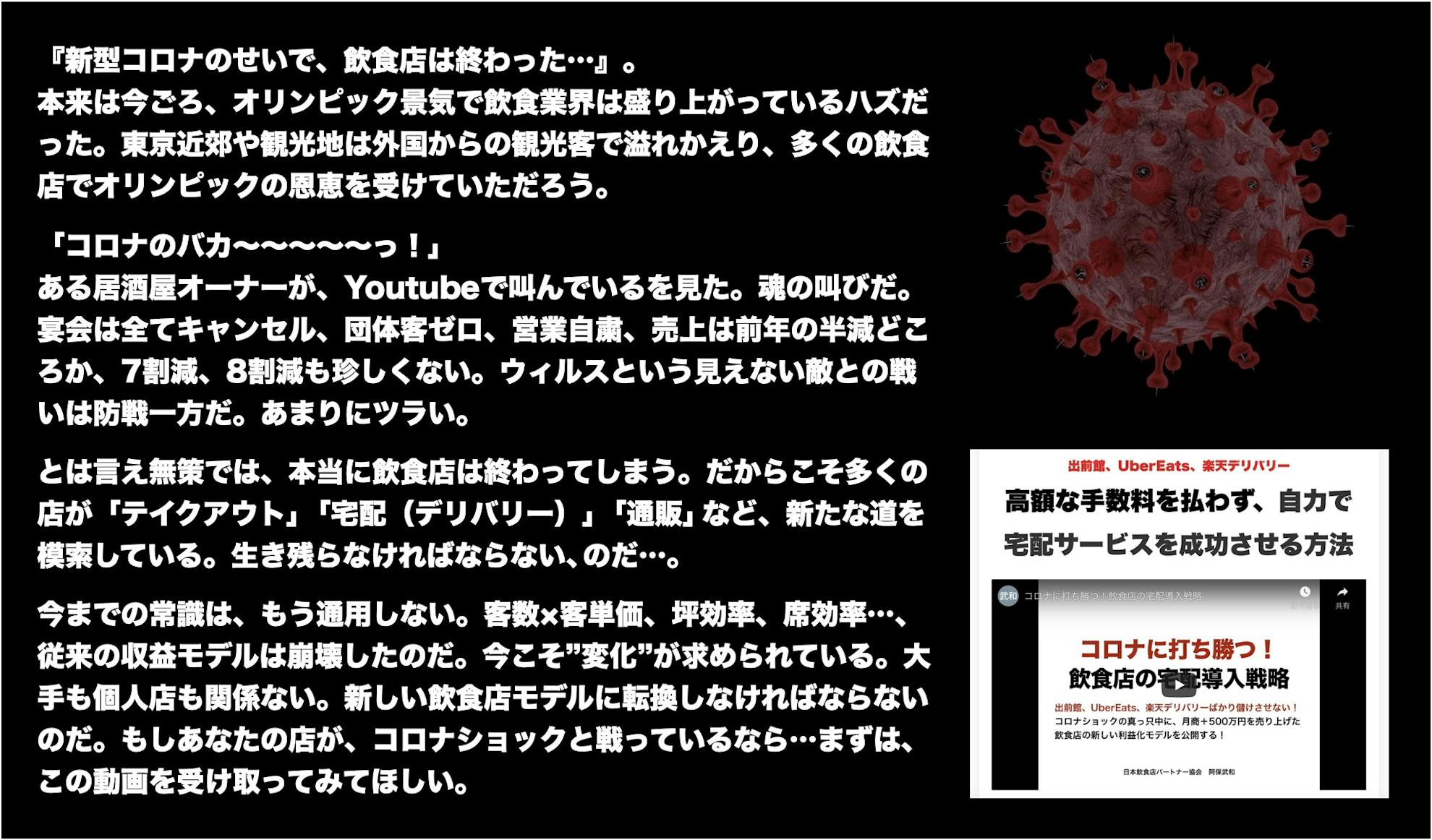 もしあなたの店が、コロナショックと戦っているのなら…まずは、この動画を受け取ることから始めてほしい。