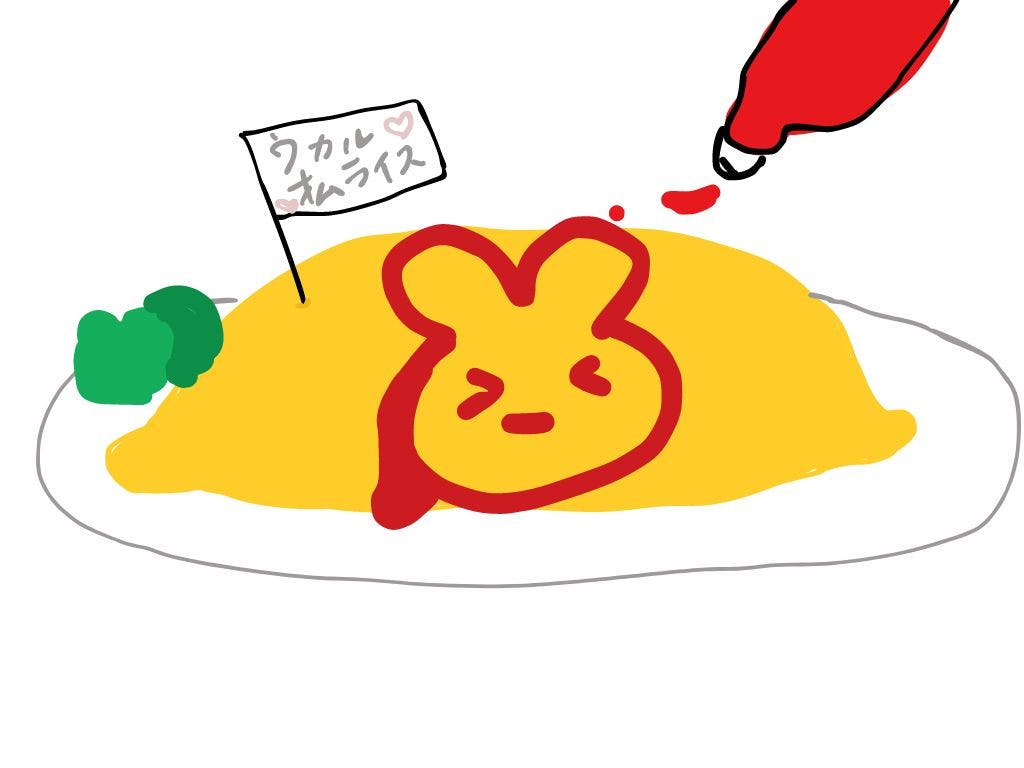 ケチャップでウカルちゃんを描いた美味しいオムライスです:2_:
