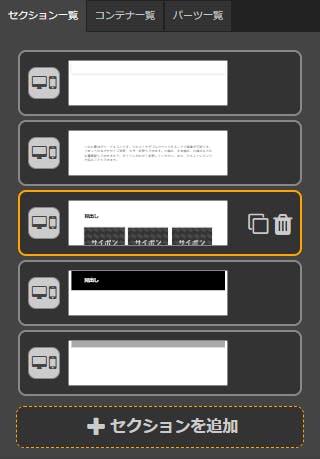 パーツを配置し、並び順を制御する中間の単位 セクション内のレイアウト枠