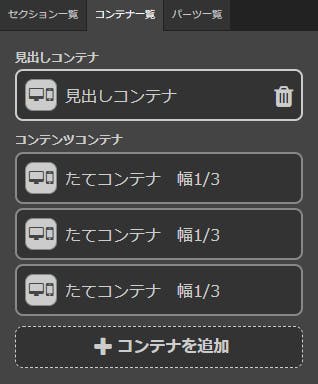 コンテナは、セクションの中に配置され、パーツを囲んでレイアウトを制御する中間の箱です。