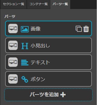 パーツは、Webページに表示される具体的なコンテンツそのものです。