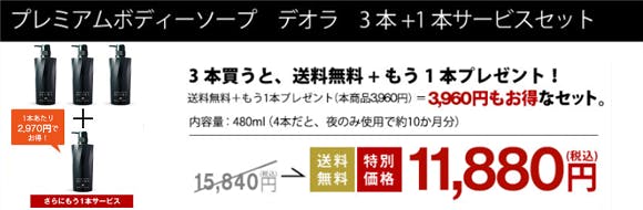 その他1本プレゼントの内容だったり購入方法といった詳しい情報については↓の「デオラボディソープ」公式ページよりご覧ください!