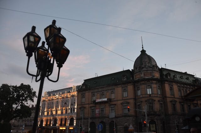右の画像:ウクライナ・リビウ・夕方の街並み