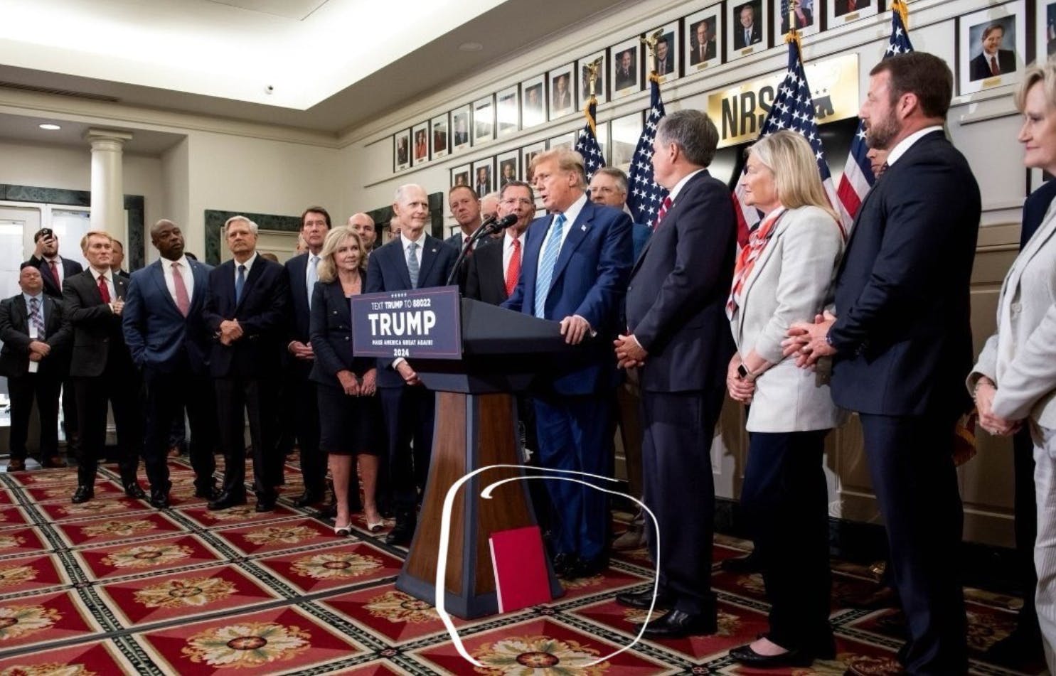 後ろの星条旗には金色のフリンジがついています。金色のフリンジが付いているということは?
