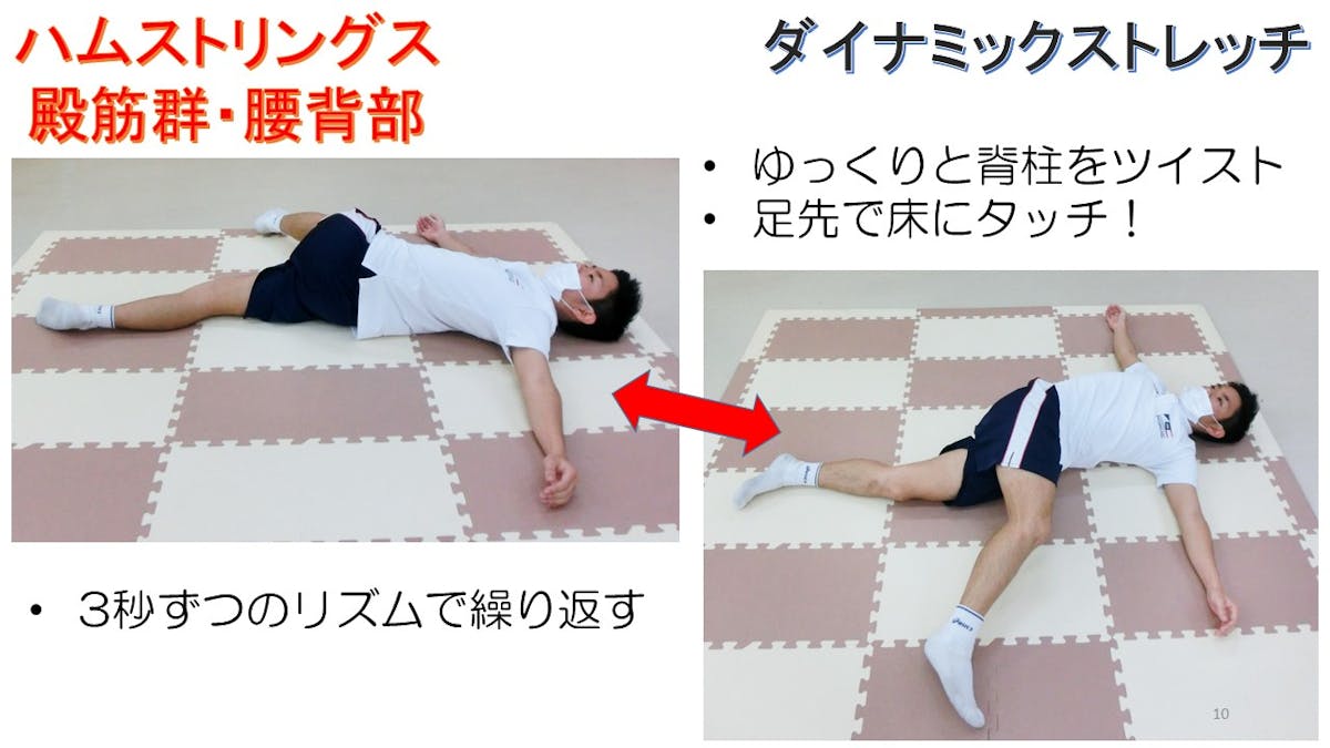 ・5秒間位、抵抗運動を行った後に、10秒位ストレッチ