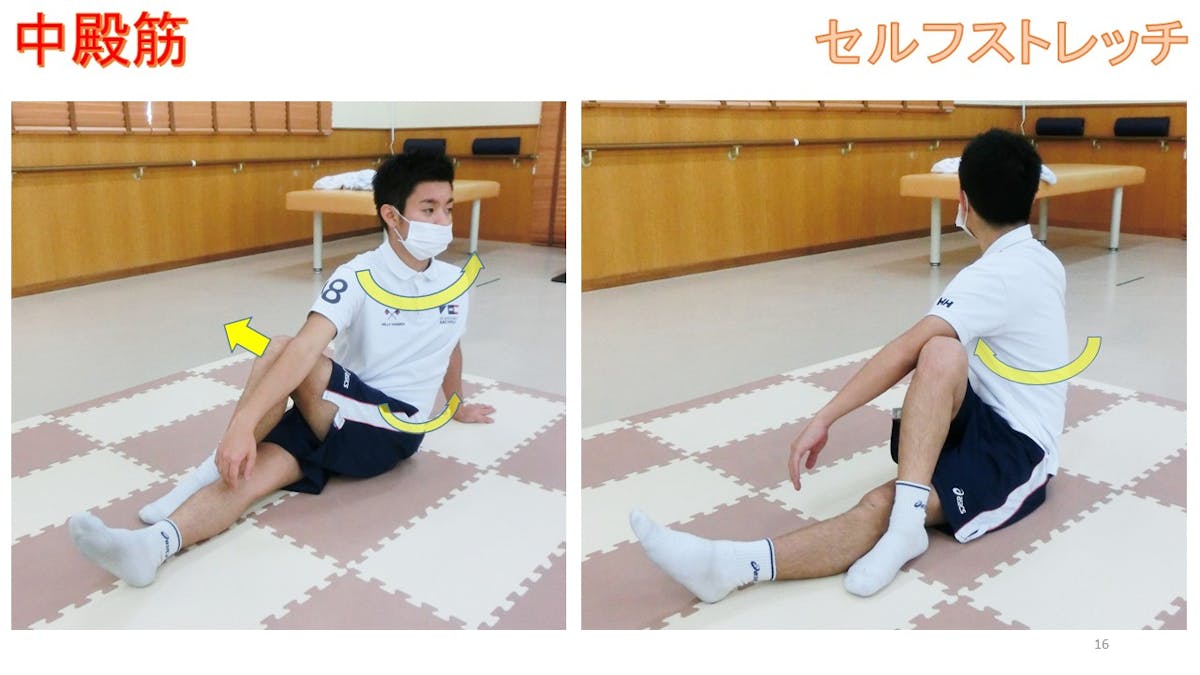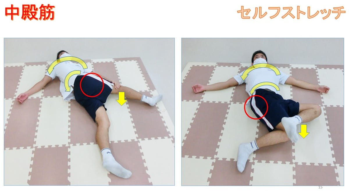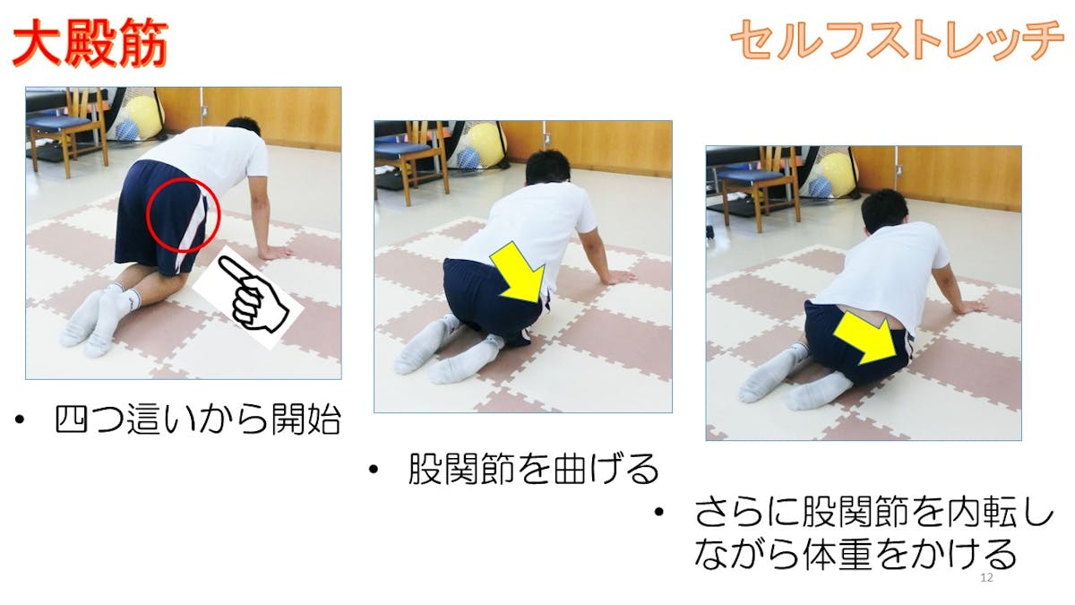 ・骨盤が浮いてこないように、お尻の下の方を固定する