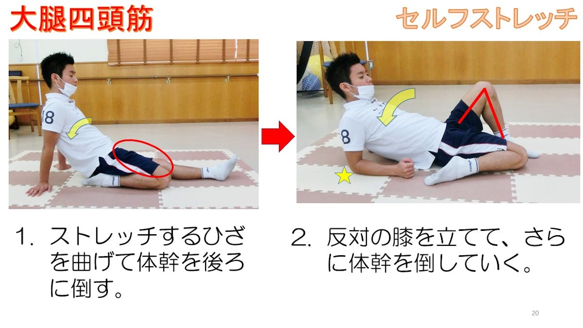 ・お尻の運動を数回行うことで、大腿四頭筋がゆるみやすくなります。