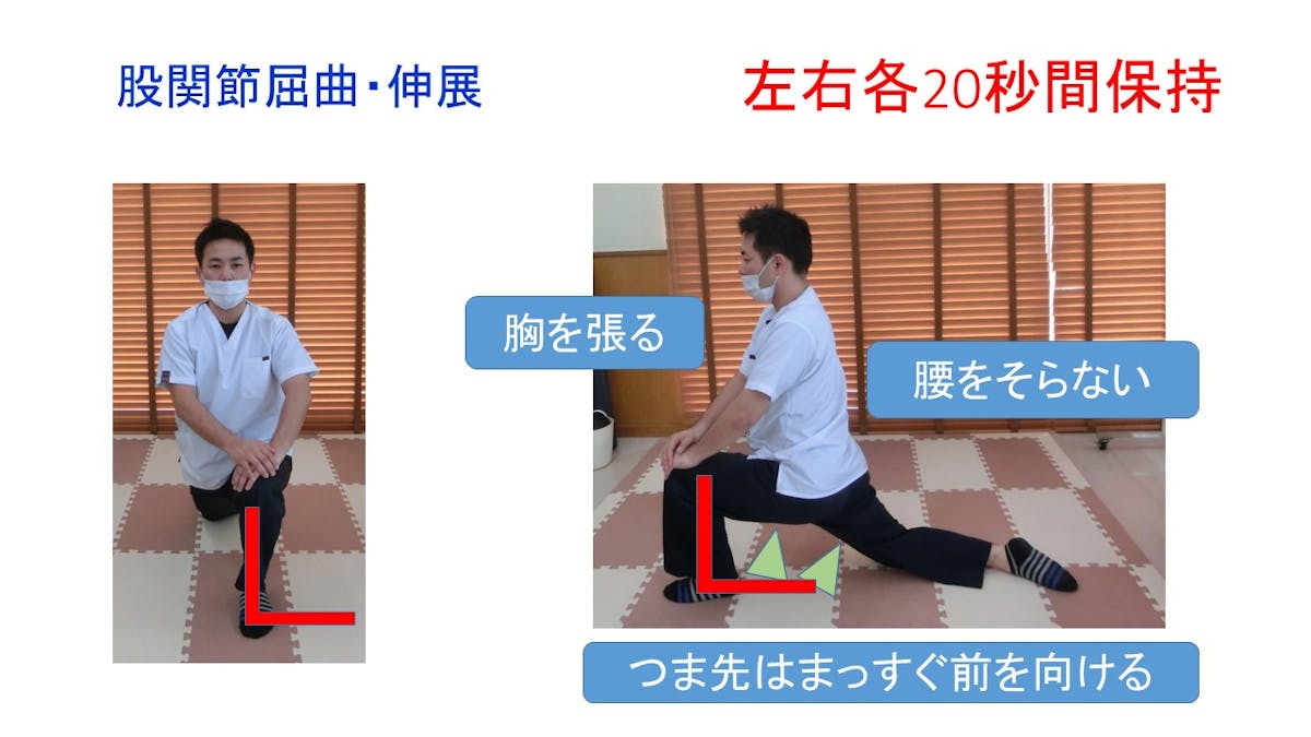 練習前、試合前のウォーミングアップでは、「ダイナミックストレッチ」を行いましょう。