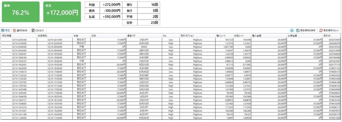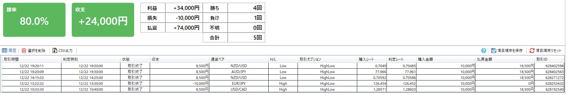 勝率が「70%~100%」と、着実に資産形成できる素晴らしい成績が出ています。
