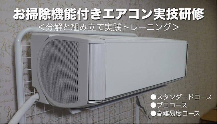 分解範囲については、「プロコース」と同様に、ドレンパン・送風ファン・電装ボックスを外す分解パターンでの実技研修となります。