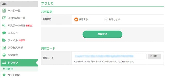 2、作ったサイトにはすべてこのやり取りコードが割り当てられている。
