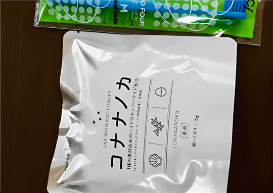 コナナノカはよくあるペーストタイプと違って水分や防腐剤を含まない粉タイプのおかげかスッキリ落ちてくれてると思えているし、シトラスミントの爽快感も毎日磨いていて気持ちいい歯磨きです。