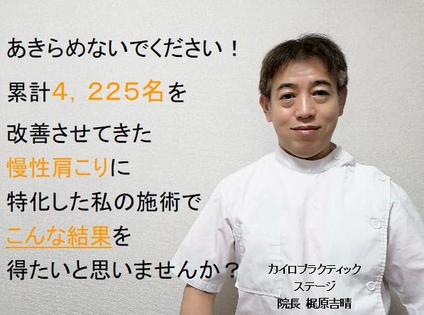 もし、あなたが今、上記のようにあ悩みで、ほんの少しでも心のどこかで良くなりたい!と思われているなら、カイロプラクティック ステージ に来院し、そのつらい慢性の肩こりを根本から改善しませんか?