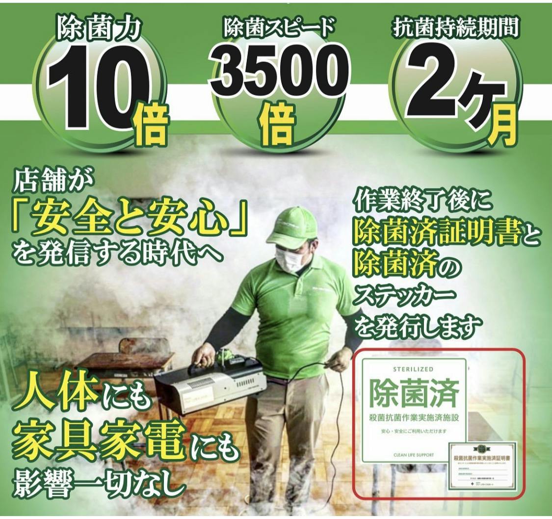 希塩酸と水を分解して生成した除菌剤で消毒します。