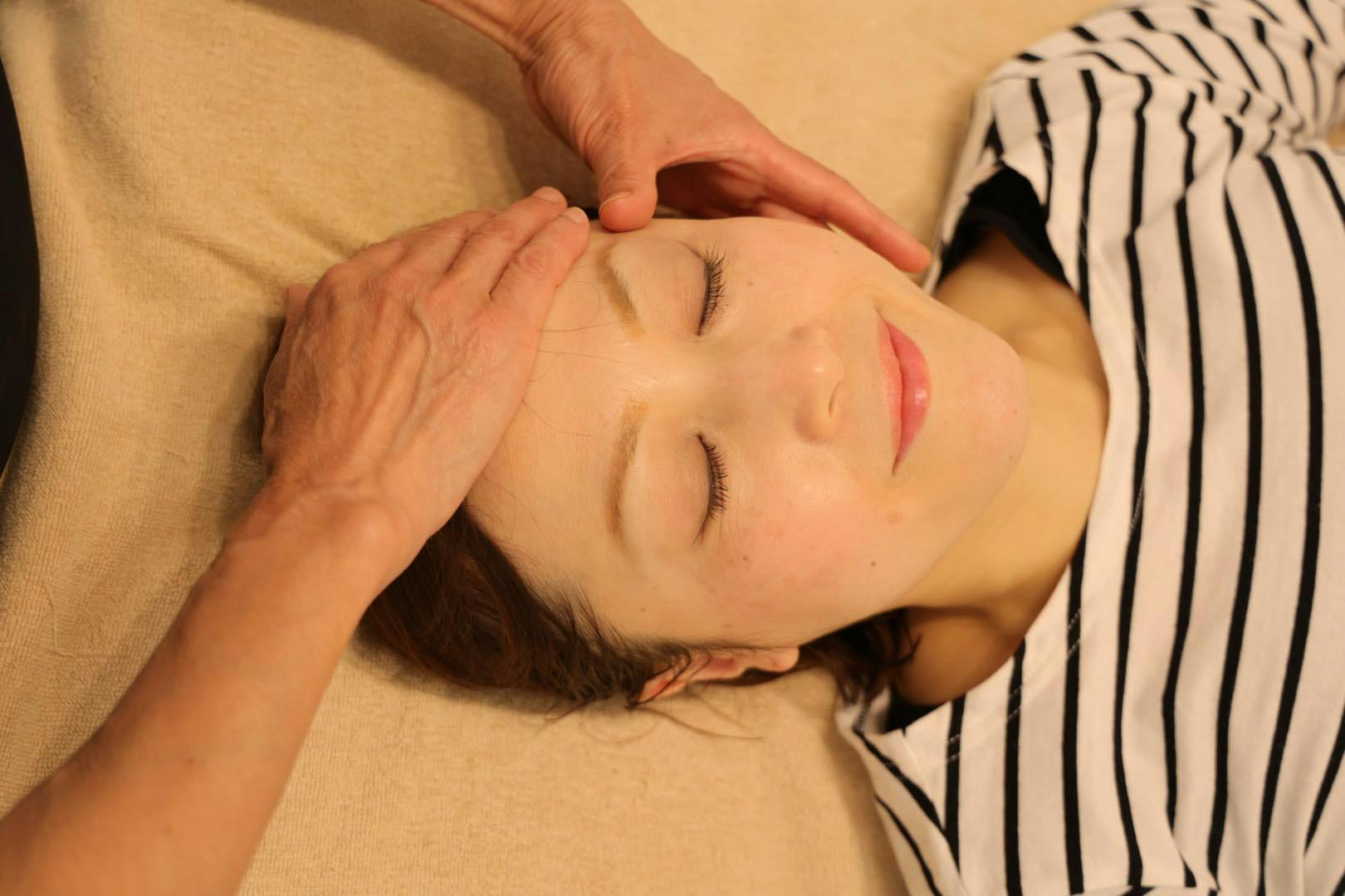 加えるものではなく、ごくごく優しいタッチと呼吸で、ご自身の筋肉をゆるめ、ふんわりとした雰囲気から凛とした小顔美人に!