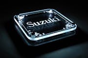 この文字はどうして光っているのと思いますか? ガラスの小口(厚み部分)からLEDで照射しているのです。