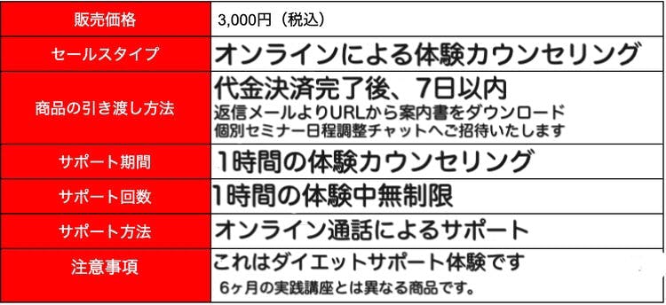 3.個別セミナー終了時に提供する一生太らない食事法実践講座を