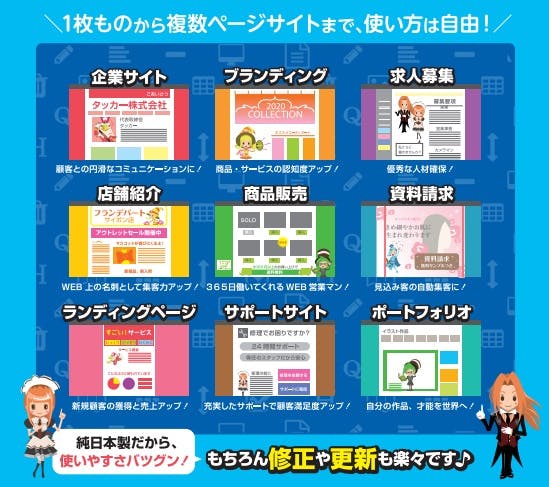 サイポンなら本格的なホームページも作成可能で、いろんな業種カテゴリー分類にテン
