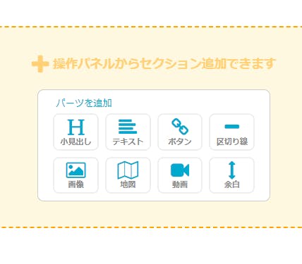 セクションから追加を選ぶとパーツを追加、と出てきます。8つの中からボタンという所をクリックすると