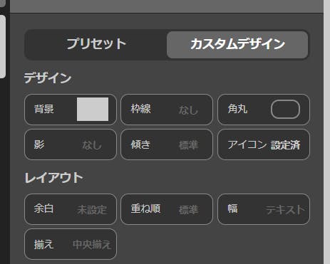 ボタンのデザインを変えてみましょう。背景(今はグレーですね)をクリックすると、