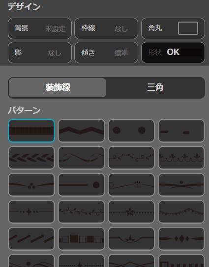 それをクリックすると、「装飾線」と「三角」が出てきます。