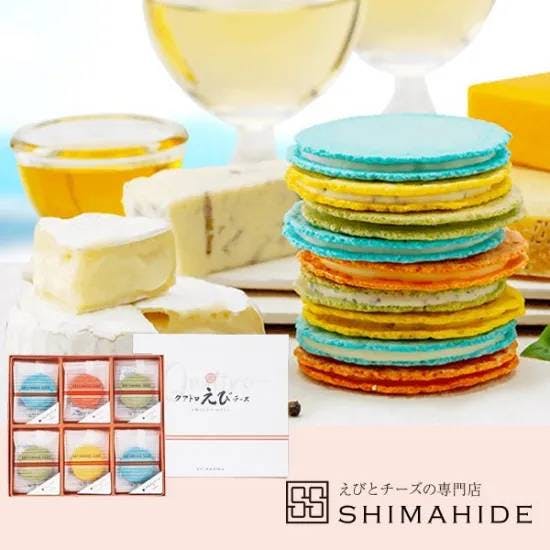薄く焼き上げたえびせんにチーズクリームをサンドした洋風スタイルと、カラフルな見た目が特徴で、SNSやレビュー投稿でも写真付きで紹介される場面が見られます。