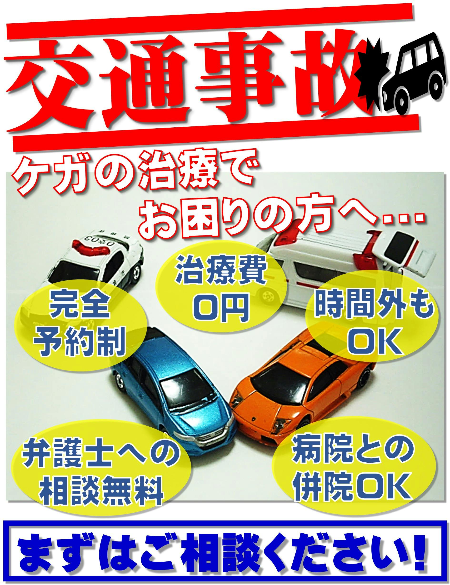 ・交通事故のケガ:→詳しくは次の『交通事故治療』の項目へ。