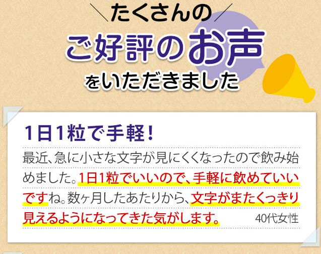 私も老眼は年々悪くなっている印象ですがえんきんを飲んで老眼が改善したという実感はありません