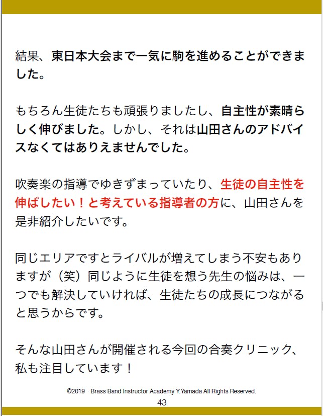 日頃のパートのレッスンなどで吹奏楽部に関わることが多い中で、合奏の指導にも興味があった為参加させていただきました。