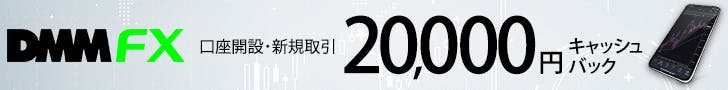 現在DMM FXは新規講座開設+500Lot新規取引で20,000円キャッシュバックキャンペーンを行っています。