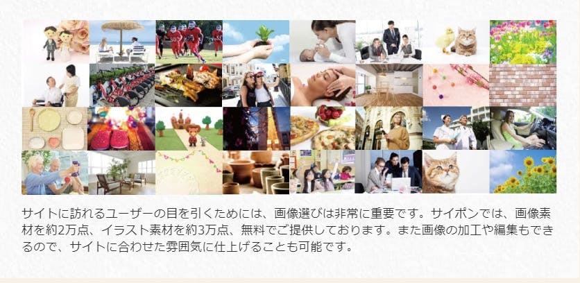 画像素材が約2万点、イラスト素材はなんと約3万点が全部無料で使えます。