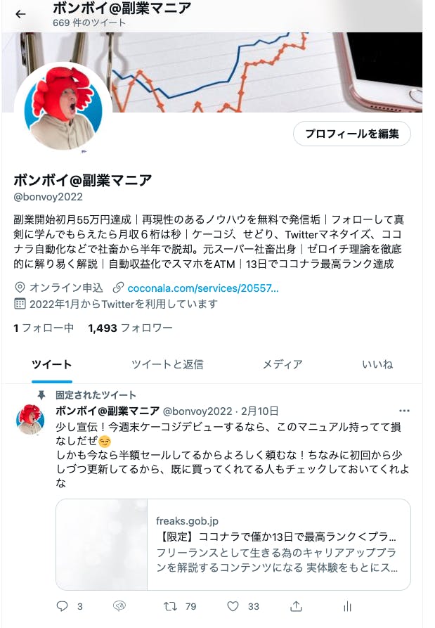 こちらが私のTwitterのプロフですが