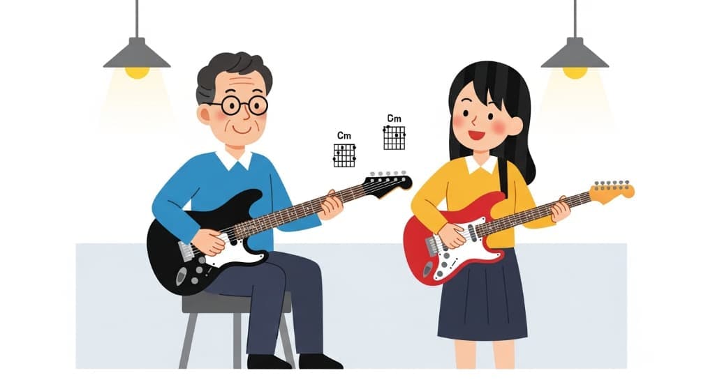 結局、私は2ヶ月でギターを壁のオブジェにしました。これが独学のリアルです。でも、もしあの時ギター教室に通っていたら?きっと講師は私の手の形や指の長さを見て、「あなたの場合は、親指をネックのこの位置に置くと力が入りやすいですよ」とか、「最初は1弦と2弦だけ鳴ればOK。完璧を目指さなくていいんです」とか、的確なアドバイスをくれたはずなんです。たった一言、自分だけに向けられたその言葉が、絶望の淵から救ってくれることがある。Fコードは、独学の壁の象徴。そしてギター教室は、その壁を乗り越えるための最高の道具なんです。