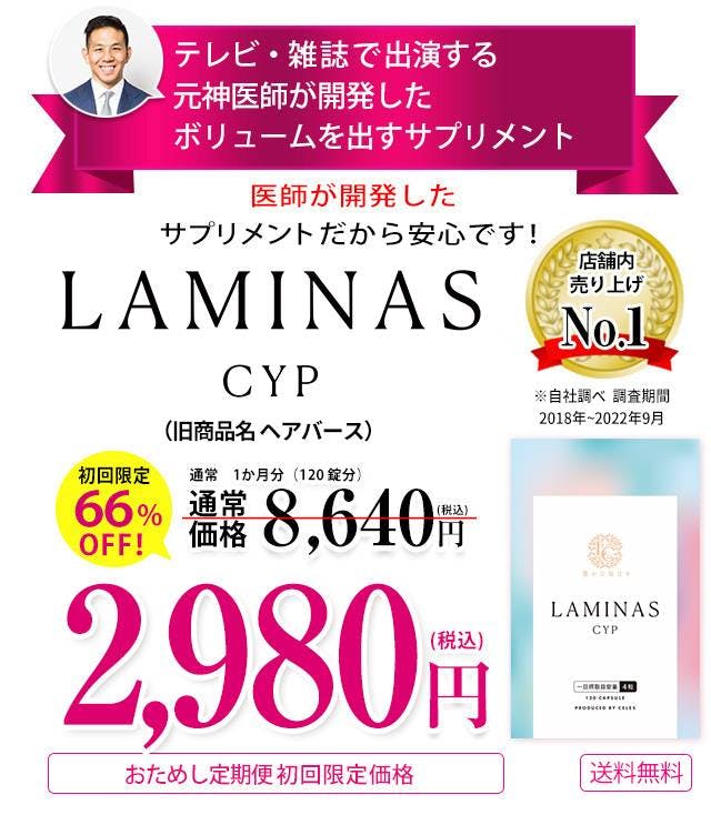 ヘアバースは、現在の公式ページではラミナスCYP(旧商品名:ヘアバース)として案内されています。