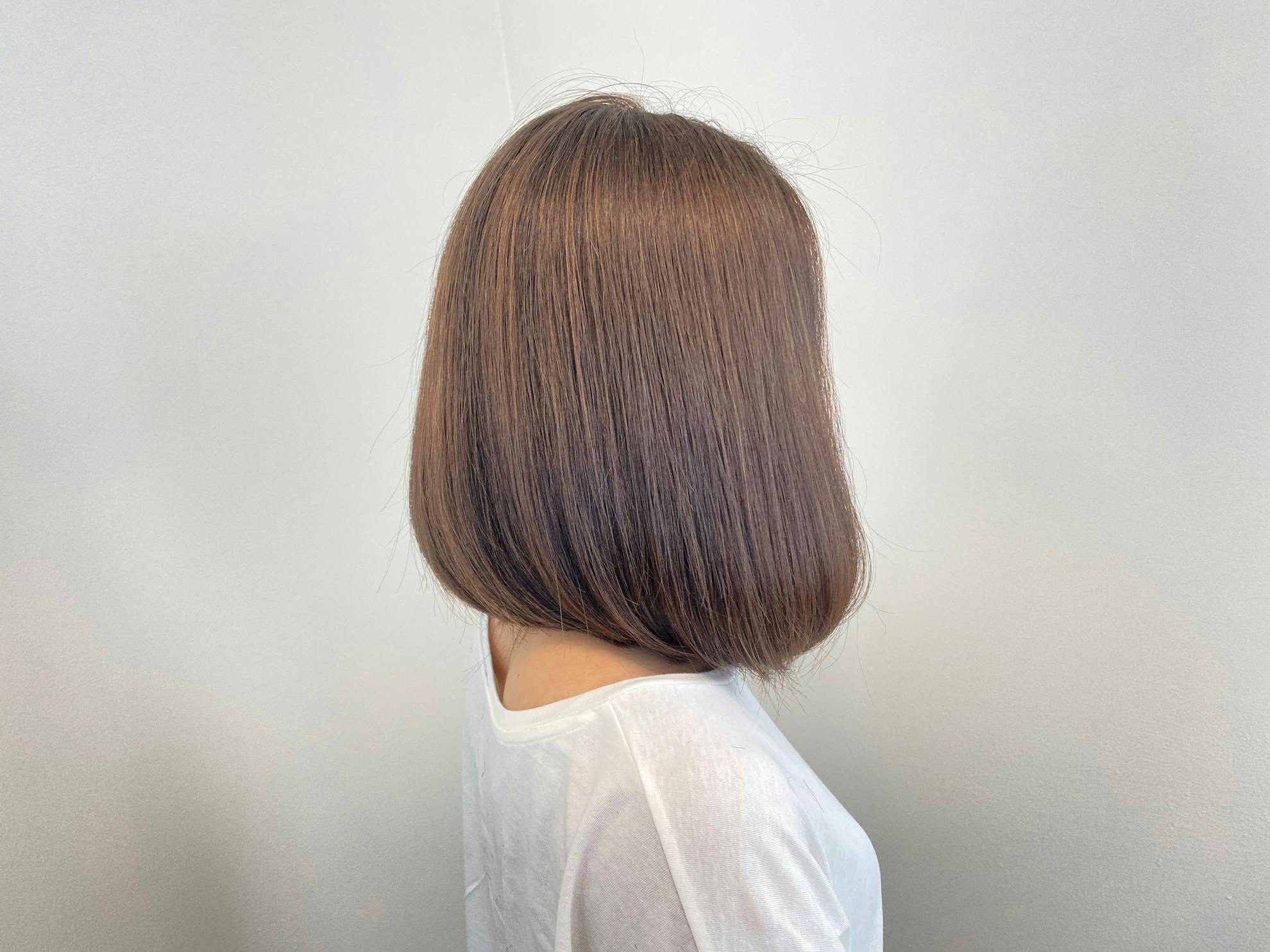 オーナースタイリスト青山がビダルサスーンで学んだブラントカット技術をベースにし、ハイクオリティーなカラーリングと