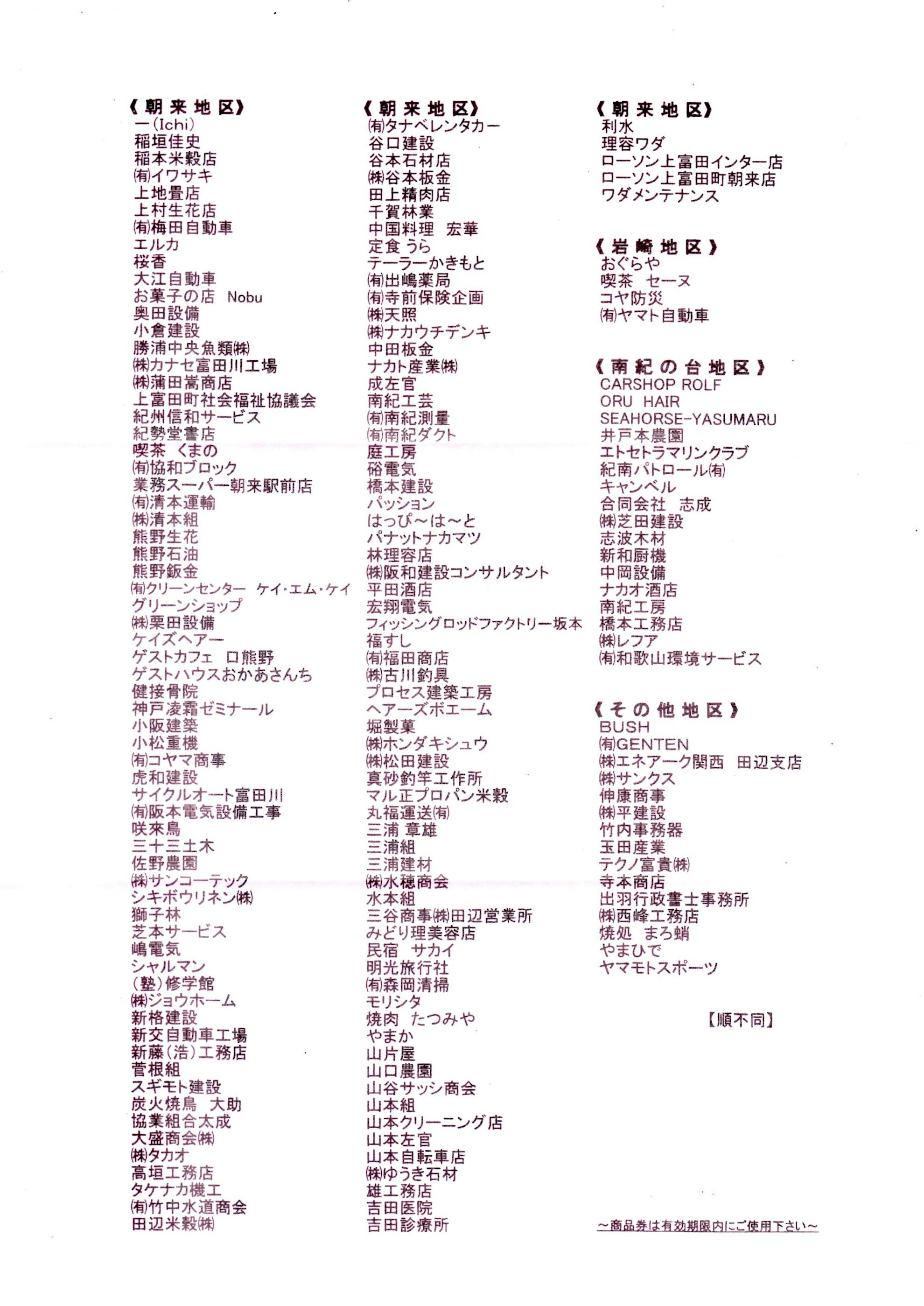 ※引用掲載元 上富田町商工会商品券加盟店一覧 上富田町商工会様 お知らせより