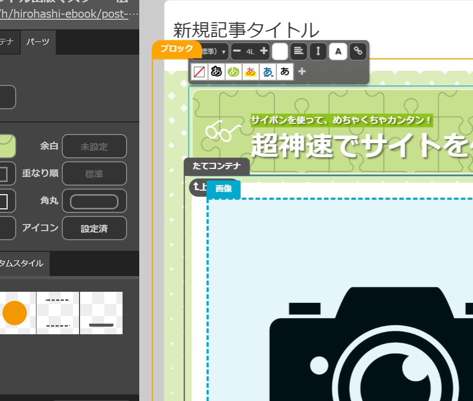 ②ブロックごとに画像や記事を入れていく
