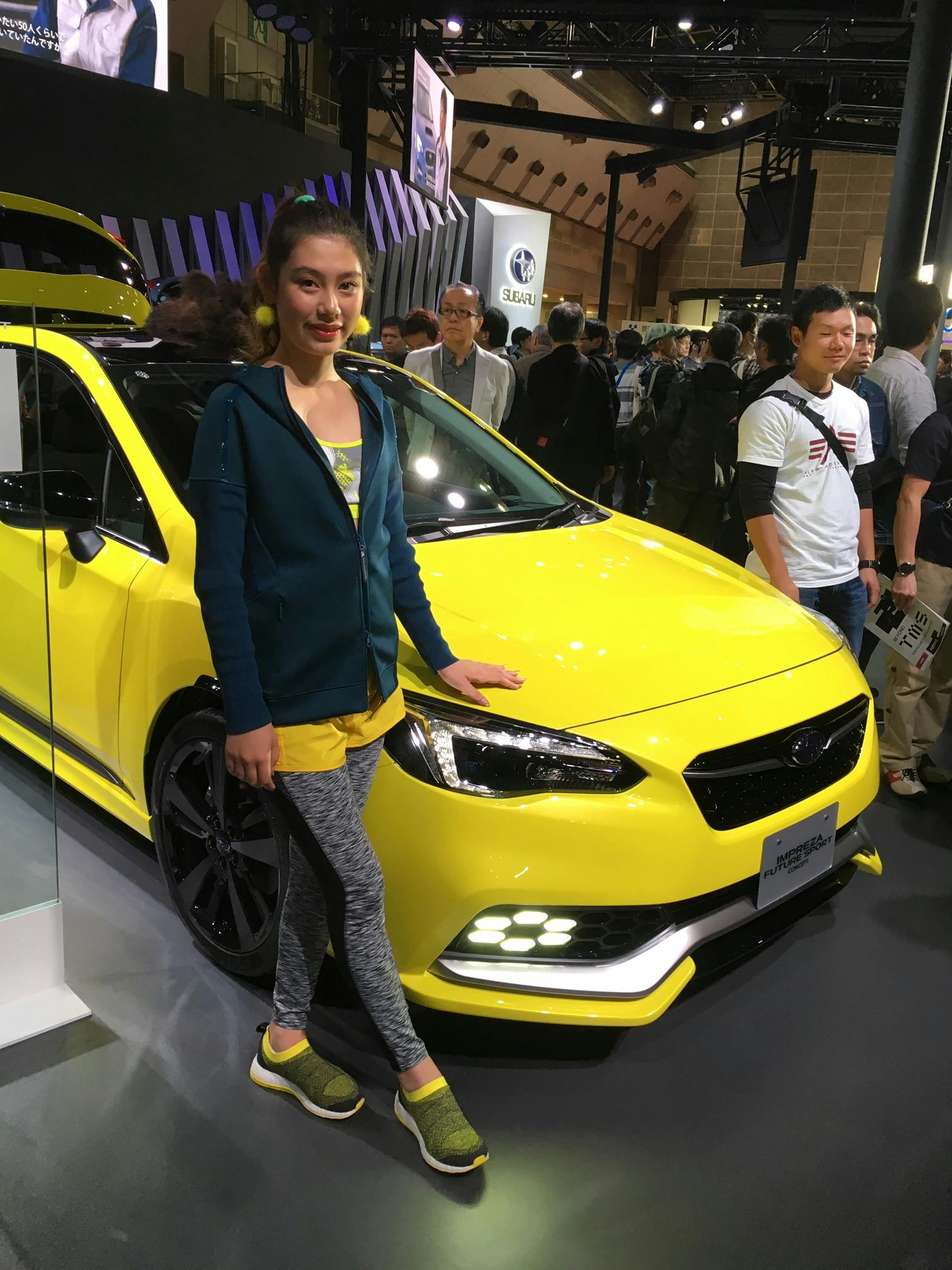 モーターショーでのコンパニオン。いつもカメラ目線です。