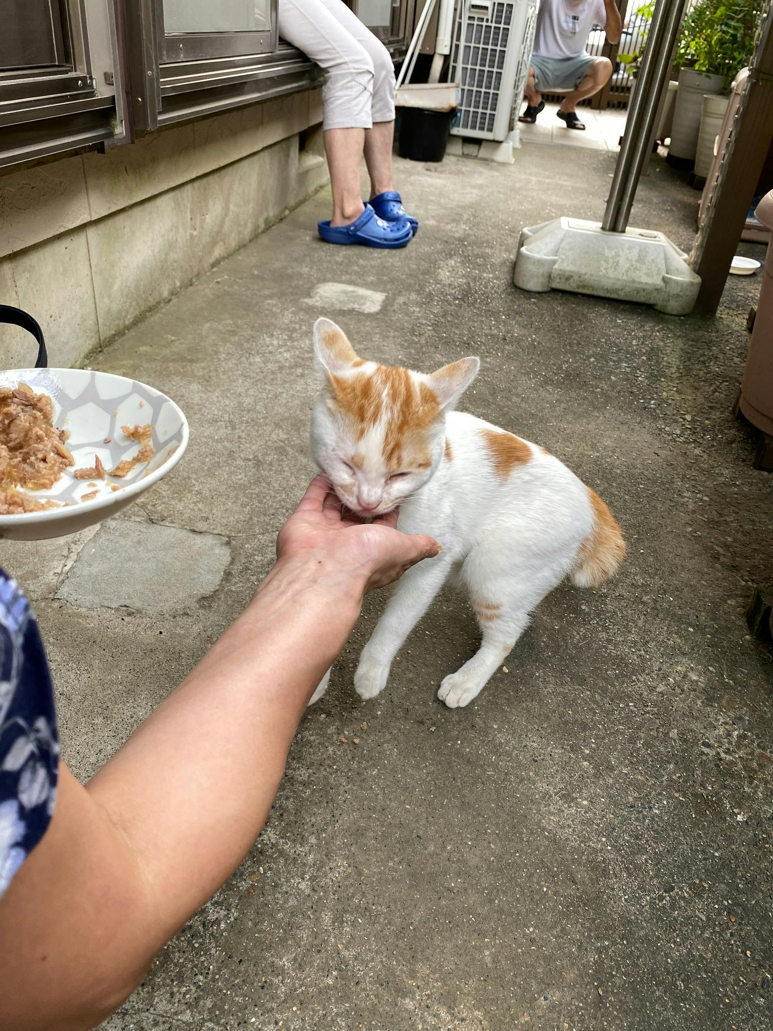 直近一週間くらいで餌付けをしてもらいながら、毎朝餌やりにでかけて家内に懐くようになりました。私も一緒に餌やりに出かけて、本日連れ帰りに成功しました。