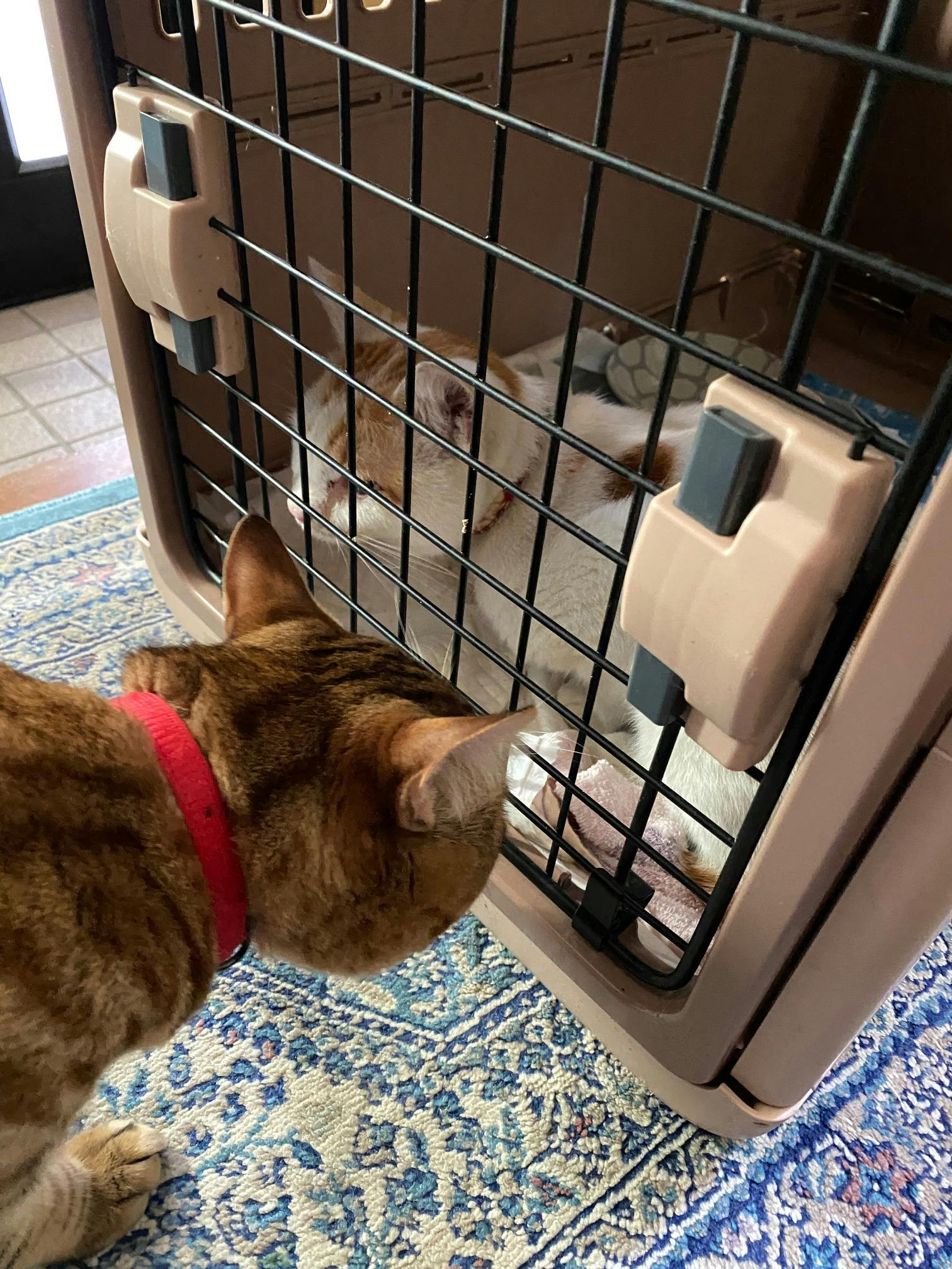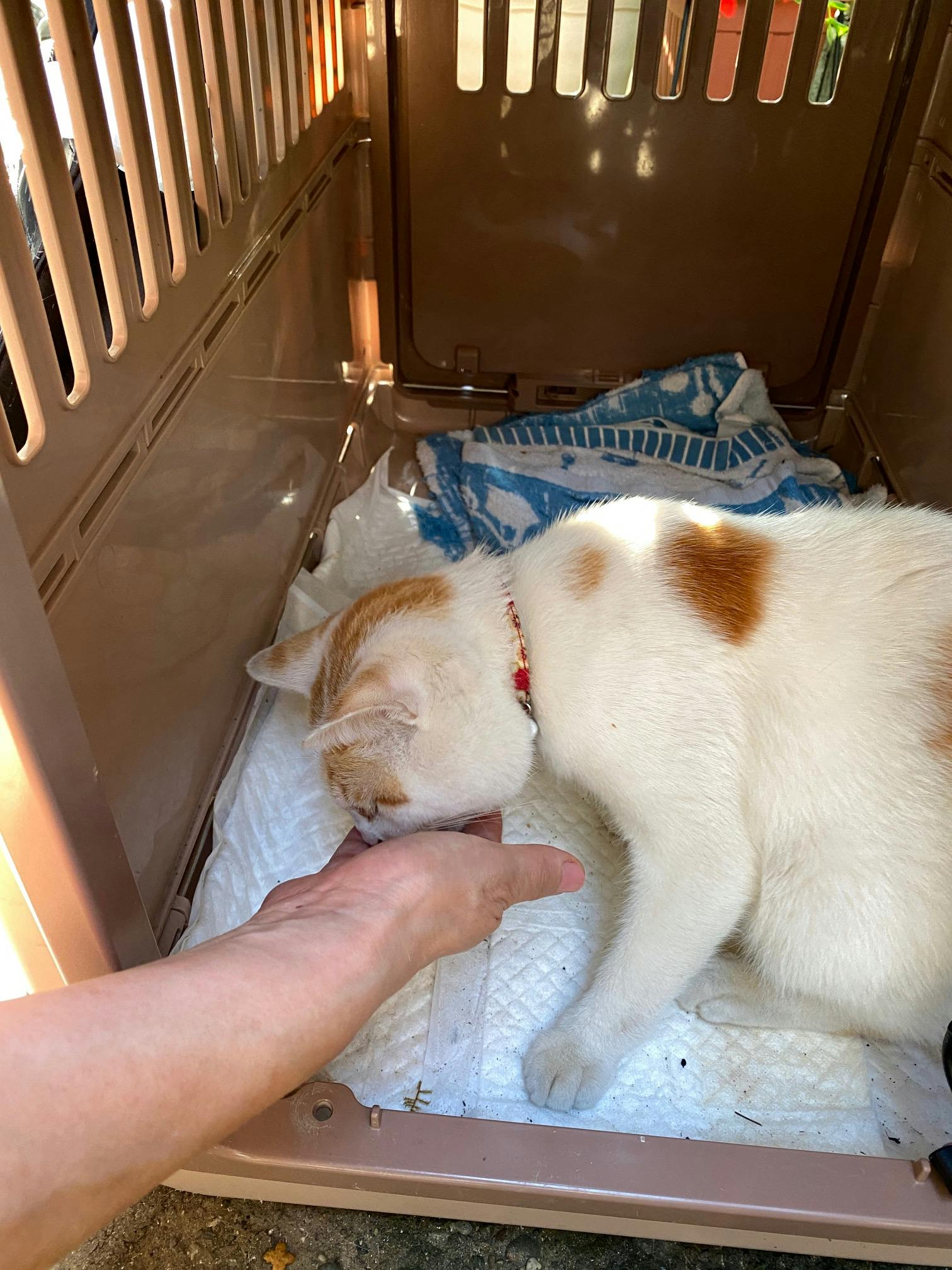 一日前にリハーサルしたとおり、餌をあげながらケージに誘導し、扉をしめて車に乗せて帰ることができました。