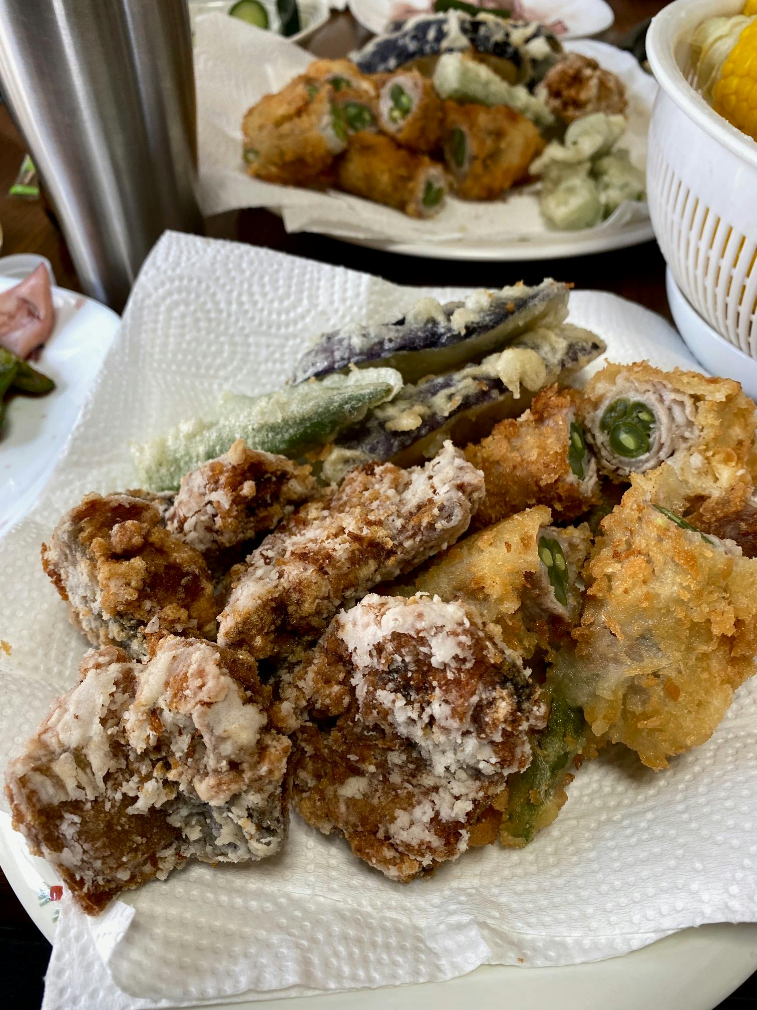 実家の兄は海釣りに数日前に行きサバを多量に持ち帰ってきたとかで、新鮮なサバやイカを食卓に出してくれて、イカに添えられたピーマンも家庭菜園でできたとかで、恵まれた食事を味わうことができました。