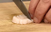 帆立は塩少量(分量外)をふり、沸騰湯でさっとゆでて冷ます