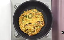 フライパンにサラダ油を中火でし、5を流し入れる。直径14㎝の丸型に広げて3~4分焼き、裏返して2~3分焼く
