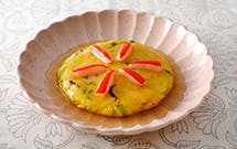 器に6を盛り、3を飾る。3の表面に香味だれをぬり、熱々の7をかけて、