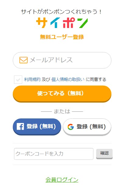 ・サイポンの新規登録時にのみ、クーポンコードの入力が可能です。